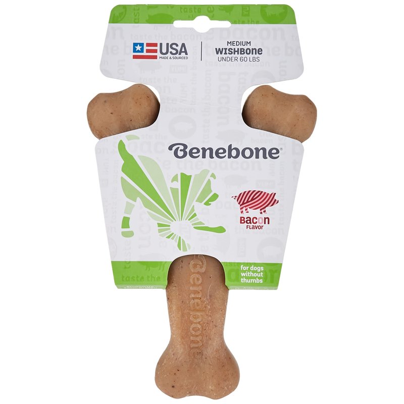 Benebone Wishbone Durable Dog Chew Toy for Aggressive Chewers, Real Bacon, Made in USA, Medium