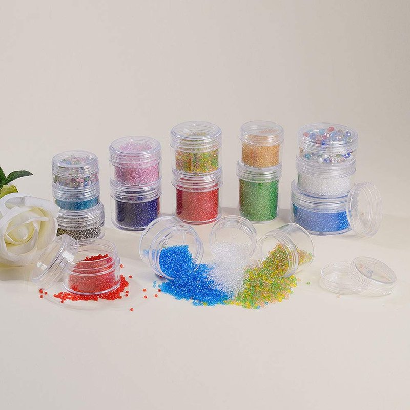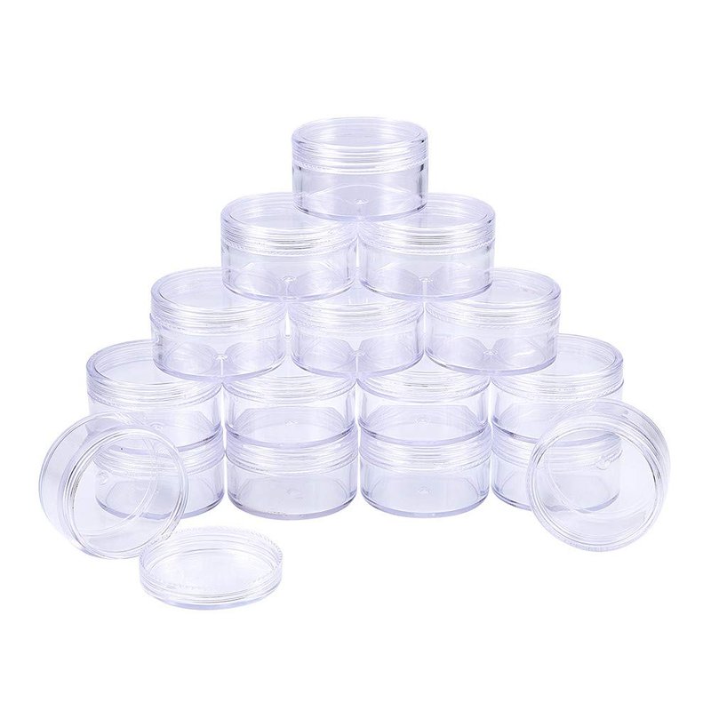 BENECREAT Empty Clear Plastic Bead Storage Container jar with Rounded Screw-Top Lids for Beads, Nail Art, Glitter, Make Up, Cosmetics and Travel Cream Various capacity and size for choice, can satisfy different needs! 10ml: 1.47x0.78 inch 15ml: 1.5x0.8 inch 20ml - 3 sizes: 1.97x0.94 inch; 1.7x1.1 inch; 1.47x1.26 inch 25ml: 1.7x1.22 inch 30ml: 1.97x1.1 inch; 1.7x1.4 inch 35ml: 1.7x1.57 inch 40ml: 1.7x1.73 inch; 1.5x2 inch 50ml: 2.2x1.33 inch Large quantities can keep your small items well organized! High Quanlity Container jar! Made of premium plastic, which is firm and sturdy, Not easy to break SCREW TOP LIDS - perfect for small items. Minimize spillage and safely store small items. Great for loose makeup, and small screws, sewing notions, findings, and so on