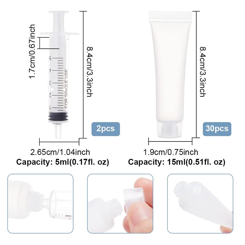 - 【Package Includes】: 30 pcs tubes, 2pcs plastic syringes, tube measures 0.75 inches wide, 3.31 inches tall; For details, please refer to pic2