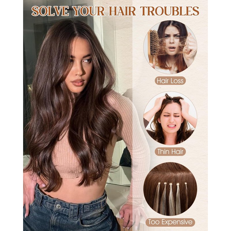 - 100% Real Human Hair: We use high-quality, 100% Remy human hair in our wire hair extensions for a natural and seamless blend, which can remain ultra-soft, shiny, silky, and tangle-free. They can be straightened, curled, and dyed. Note that only lighter colors can be dyed to darker shades.