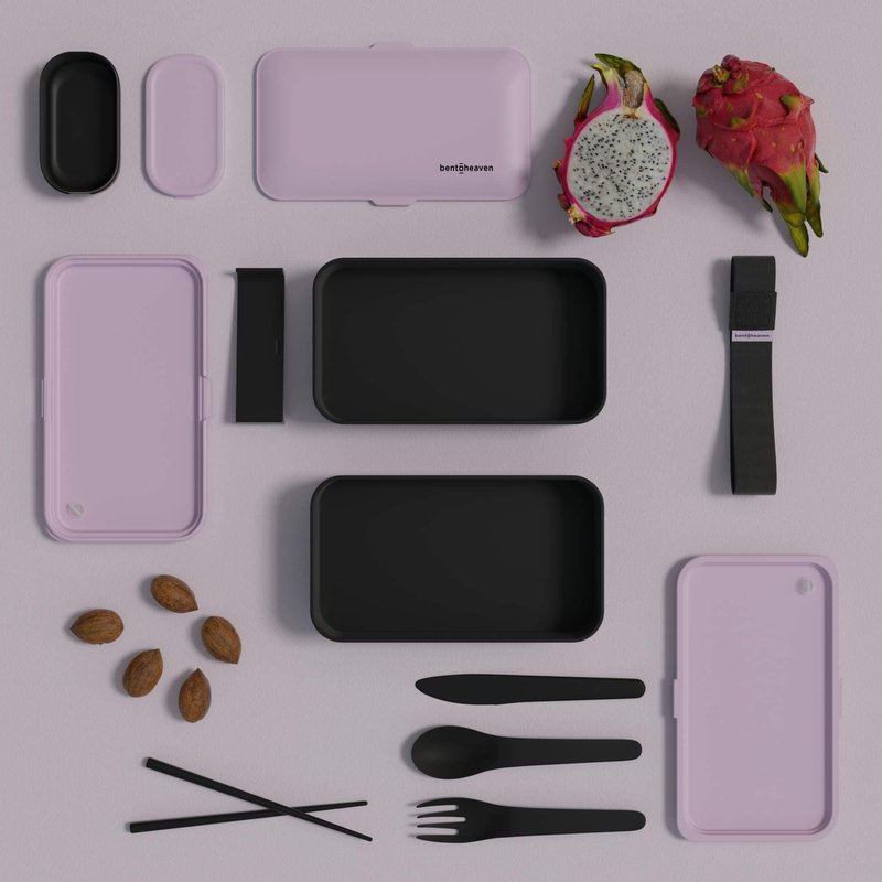 Bentoheaven Premium Bento Box Adult Lunch Box with Compartments for Women & Men, Set of Utensil & Chopsticks & Dip Container, Cute Japanese Kids Bento Lunch Box, Microwavable (Violet Me Go)
