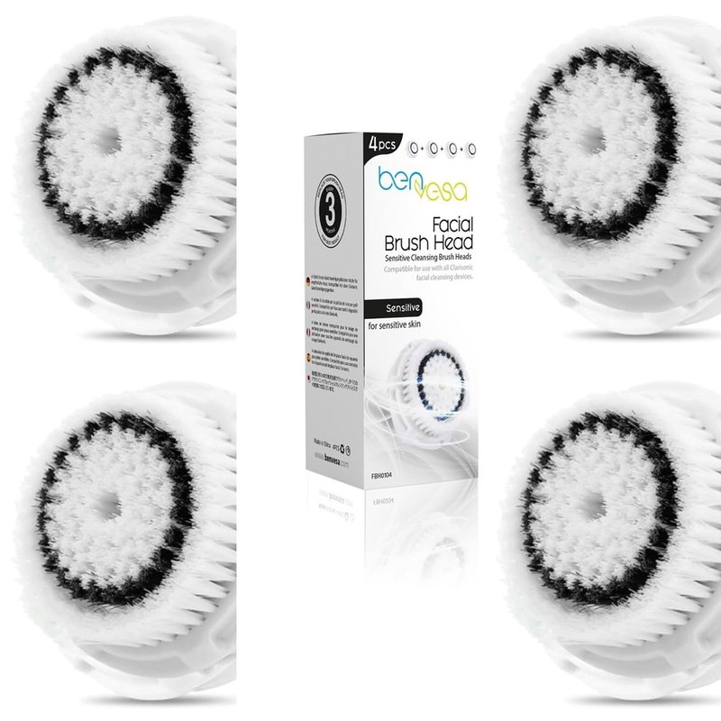 benvesa Sensitive Replacement Facial Cleansing Brush Head, 4 Pack, (BSE-4)