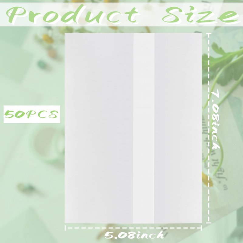 Benvo 50 Pack Pre-Folded Vellum Jackets for 5x7 Invitations Tracing Paper for Invitation Translucent Vellum Paper Wedding Invitations Wrap Liners for DIY Photos Postcards Scrapbook Envelopes(93gsm)