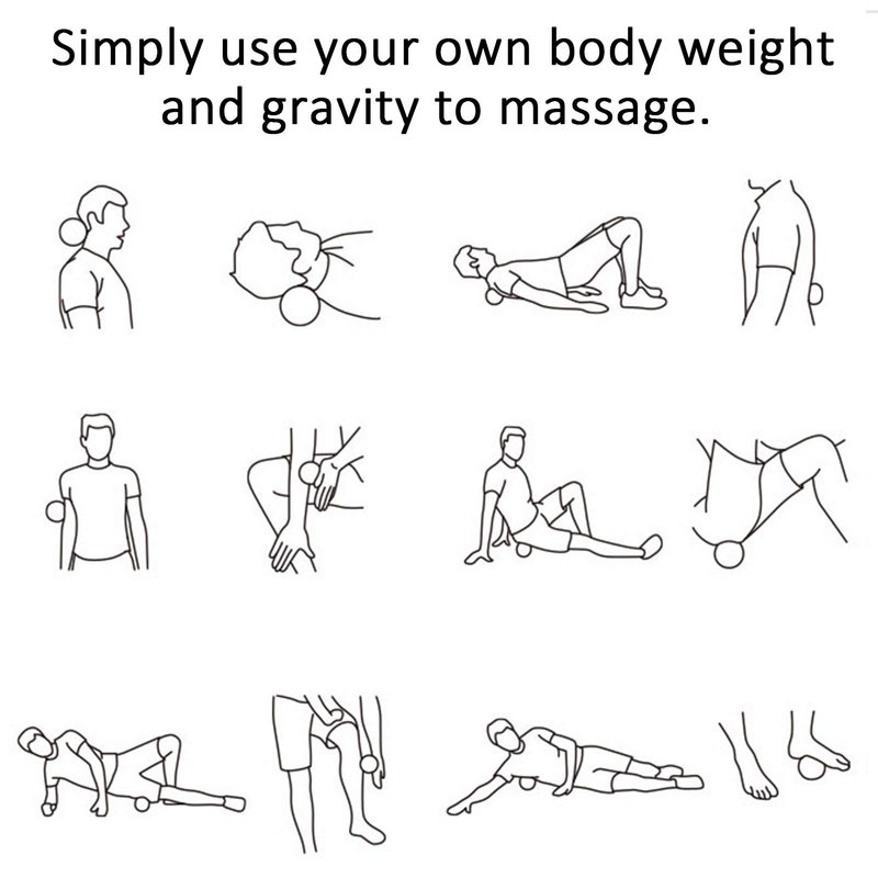 - EASY TO USE- Just lean on the massage ball, then use your own body weight and gravity to massage your neck, shoulders, back, feet, muscle joint to relieve muscle pain. Or you can sit on a chair, lay on the bed or a yoga mat to massage your whole body, relax tight and tense muscles.