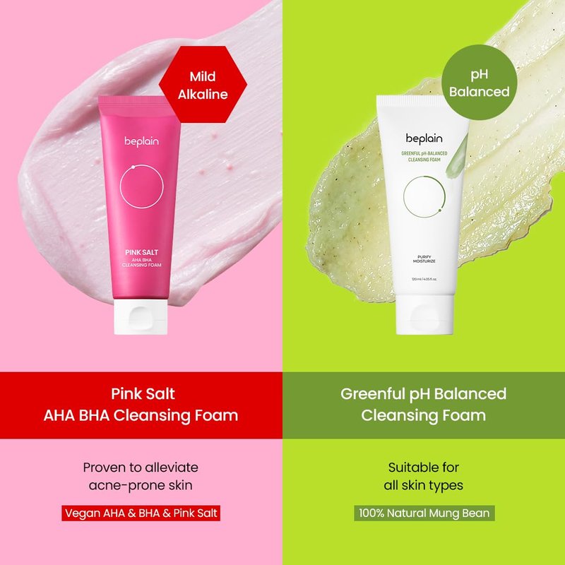 - [AHA&BHA] :This mild gentle exfoliating cleanser, enriched with pink salt and plant-derived AHA and BHA, gently exfoliates and removes dead skin cells and excess sebum for a smoother, clearer complexion.