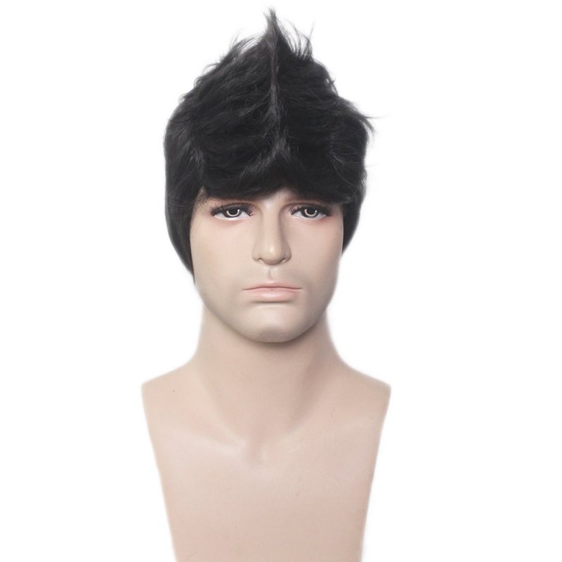 BERON Cool Men Boys Short Synthetic Wig for Cosplay Party Photo Come with Wig Cap (Black)