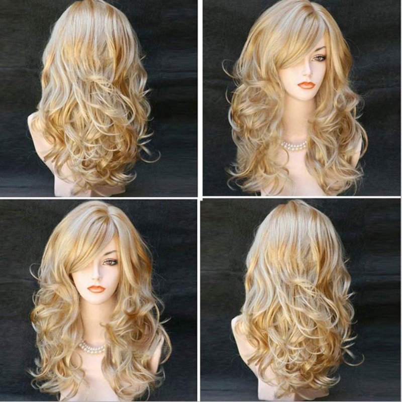 BERON Women's Long Curly 2 Tones Golden Blonde Wig Heat Resistant Big Wavy Synthetic Wig for Women Wig Cap Include