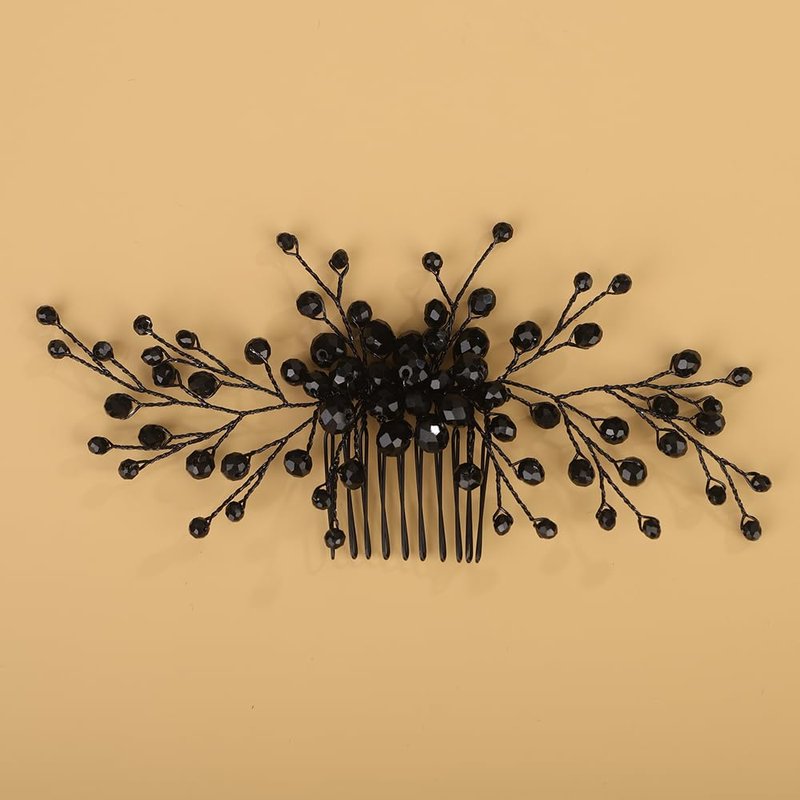 Elevate your bridal look with this stunning black crystal rhinestone hair comb.Meticulously handcrafted,this full crystal rhinestone hair side comb exudes luxury and glamour.The sexy black rhinestones create a mesmerizing sparkle,making it the perfect wedding headpiece.Designed for women and girls,this rhinestone comb adds a touch of elegance to any hairstyle.Whether you're the blushing bride or a radiant bridesmaid,this versatile accessory will make you the center of attention.Lightweight yet durable, this rhinestone hair comb is a must-have for any special occasion.