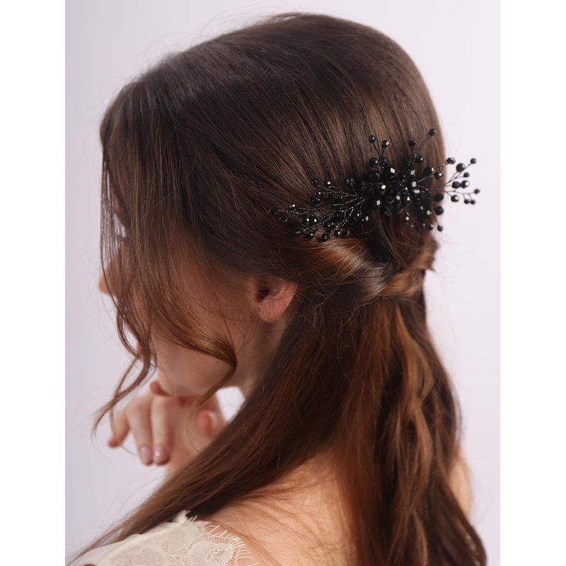 - Versatile Style:The sleek black rhinestone comb can be worn as a headpiece for weddings,formal events,or as a stylish hair accessory for any occasion.
