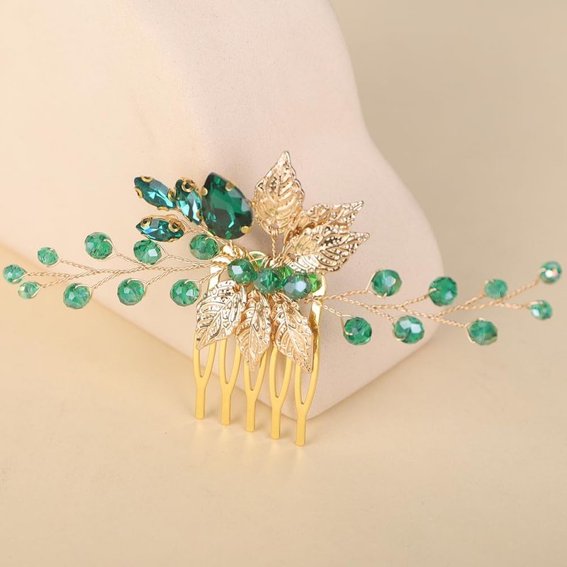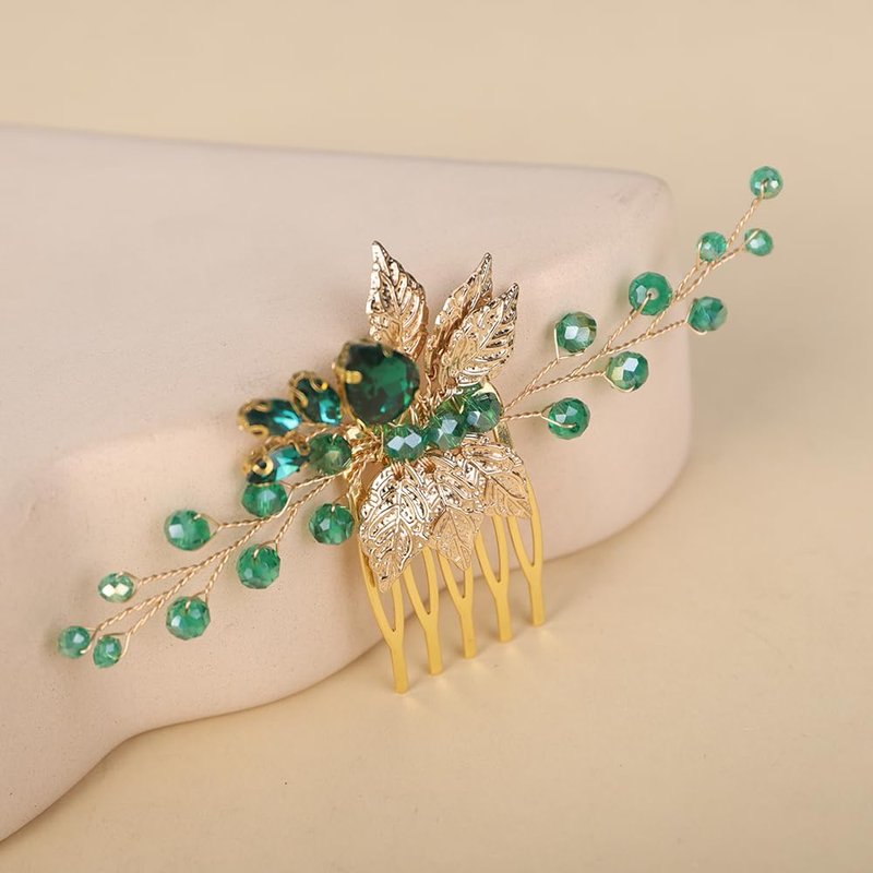 - Size:The emered green crystal rhinestone comb is 6.5cm/2.5inch in length,12.5cm/5inch in width.