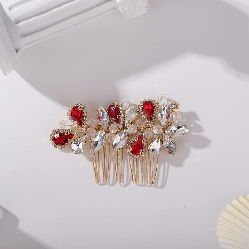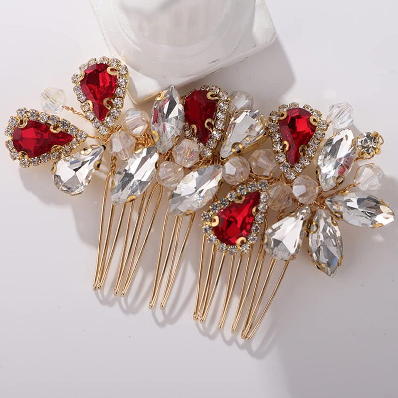 BERYUAN Bridal Hair Comb Rhinestone Teardrop Hair Comb for Bride Beaded Cute Hair Pieces Wedding Hair Accessories(red, GOLD)