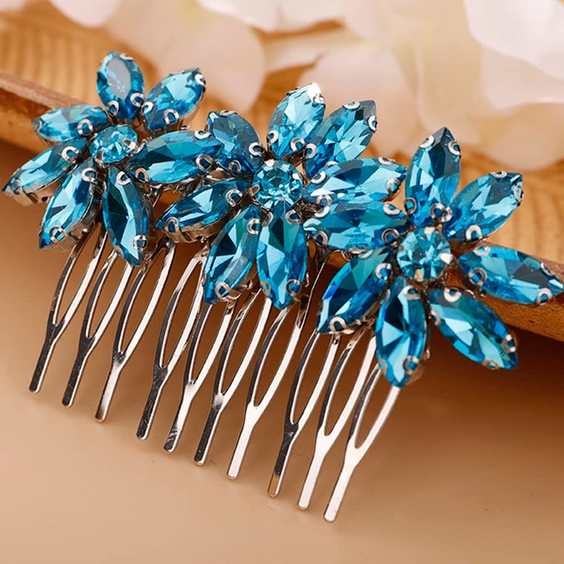 BERYUAN Crystal Flower Hair Comb for Women Girls Prom Crystals Hair Comb Wedding Headpiece for Bride Bridemaid Flower Girls peacock blue