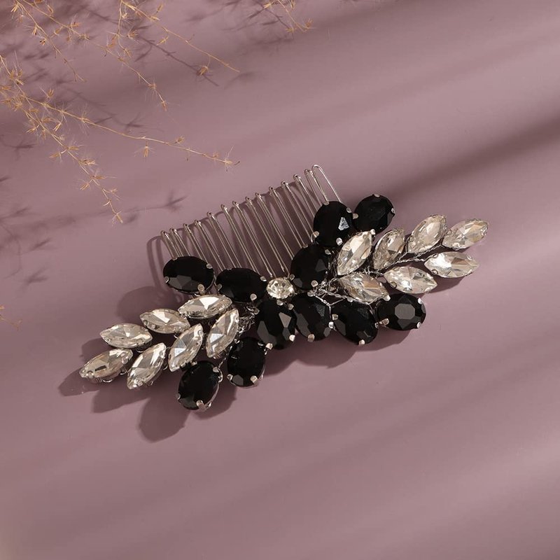BERYUAN Crystal Rhinestone Hair Comb Bridal Side Combs Wedding Hair Accessories with Rhinestone Crystal Bridal Hair Piece for Wedding Women and Girls (black)
