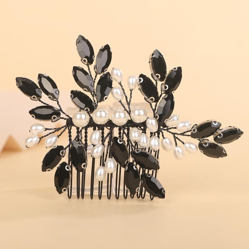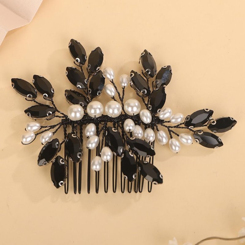BERYUAN Crystal Rhinestone Hair Comb Rhinestone Pearls Headpiece Teardrop Rhinestone Wedding Hair Accessories for Women (black)