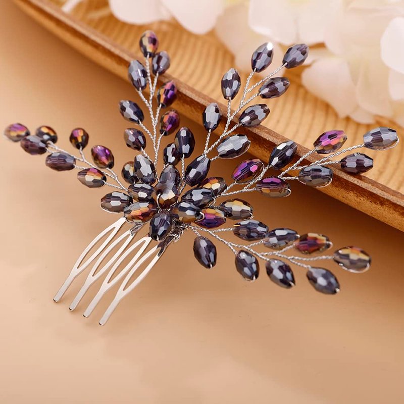 BERYUAN Cute Crystal Comb for Bride Beads Hair Comb for Women Girls Purple