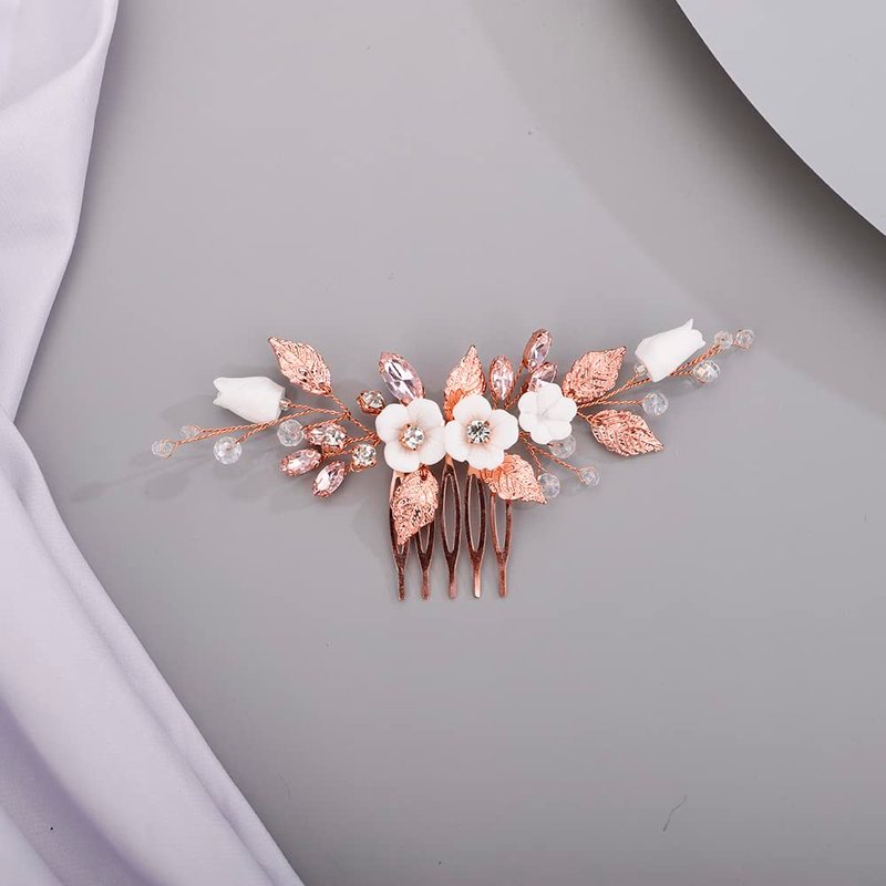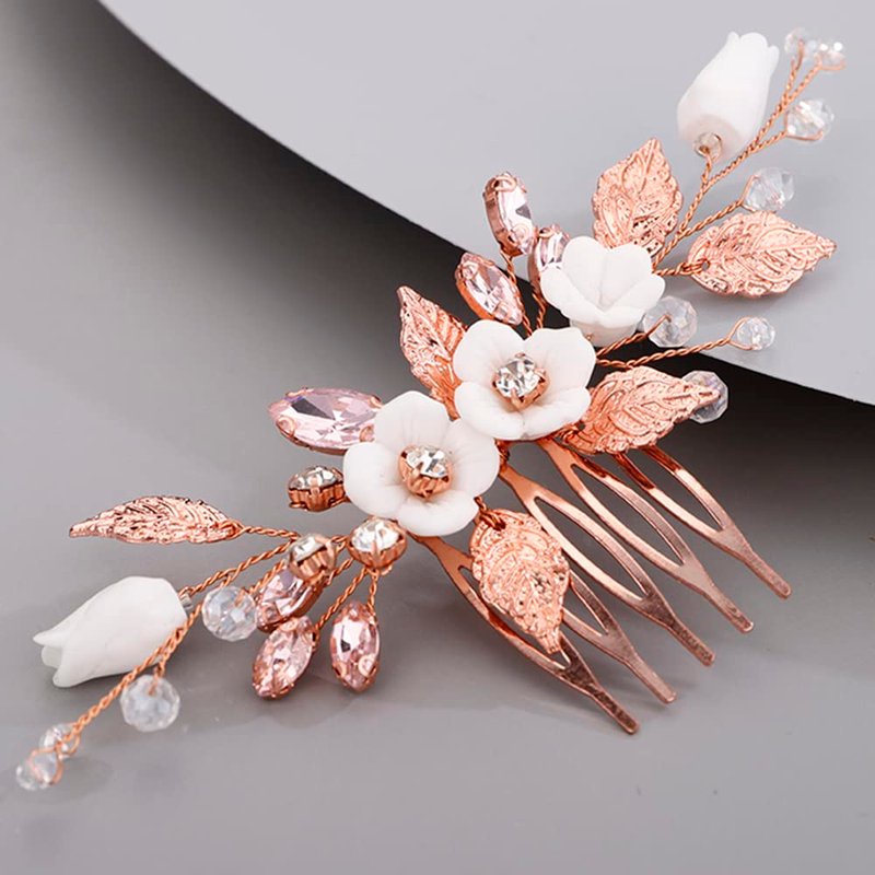 BERYUAN Cute White Flower Hair Comb for Women Girls Prom Hair Comb Pink