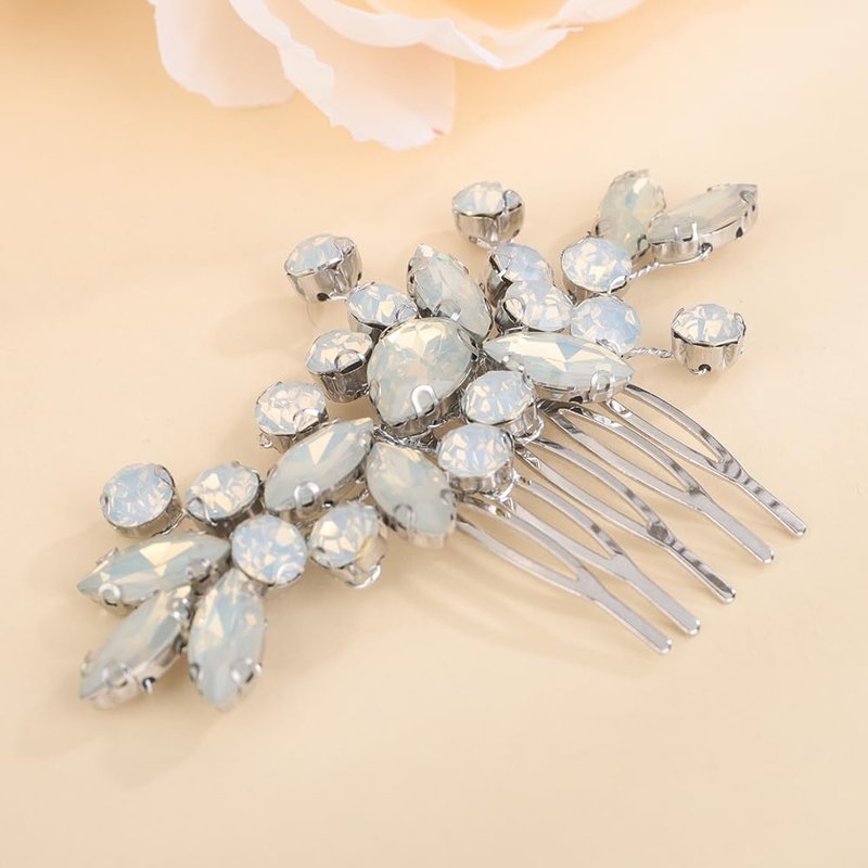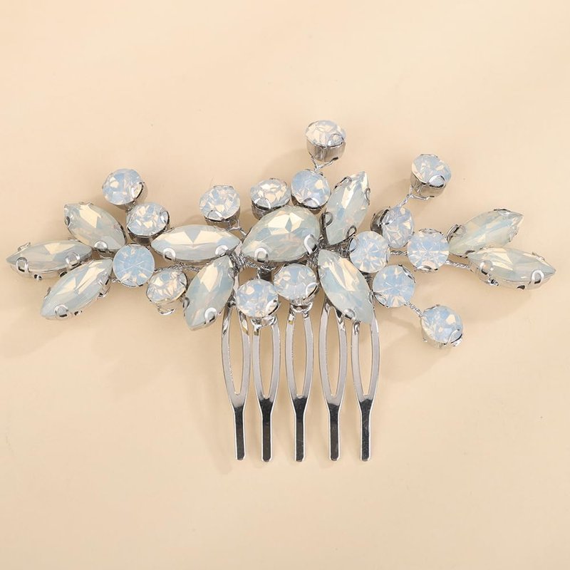 - Versatile Style:Available in silver or gold finish,this hair comb can complement various hair colors and wedding dress styles. Color:There are many colors to choose from,including opal,light purple,blue,green,peacock green,wine red.