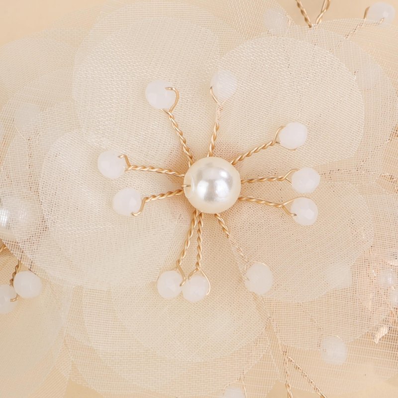 This stunning flower girl hair comb is the perfect accessory for any young girl who wants to look beautiful on her wedding day. The comb is made of white flowers and pearls,and is adorned with delicate gold leaves and flower pearls.The comb is easy to wear and secure,and will stay in place all day long.The comb is perfect for any wedding ceremony,and is sure to make the flower girl feel like a princess.This beautiful hair comb is the perfect gift for any young girl who loves flowers and glamour.