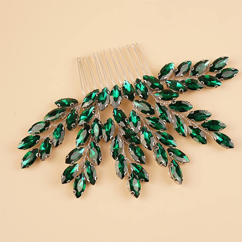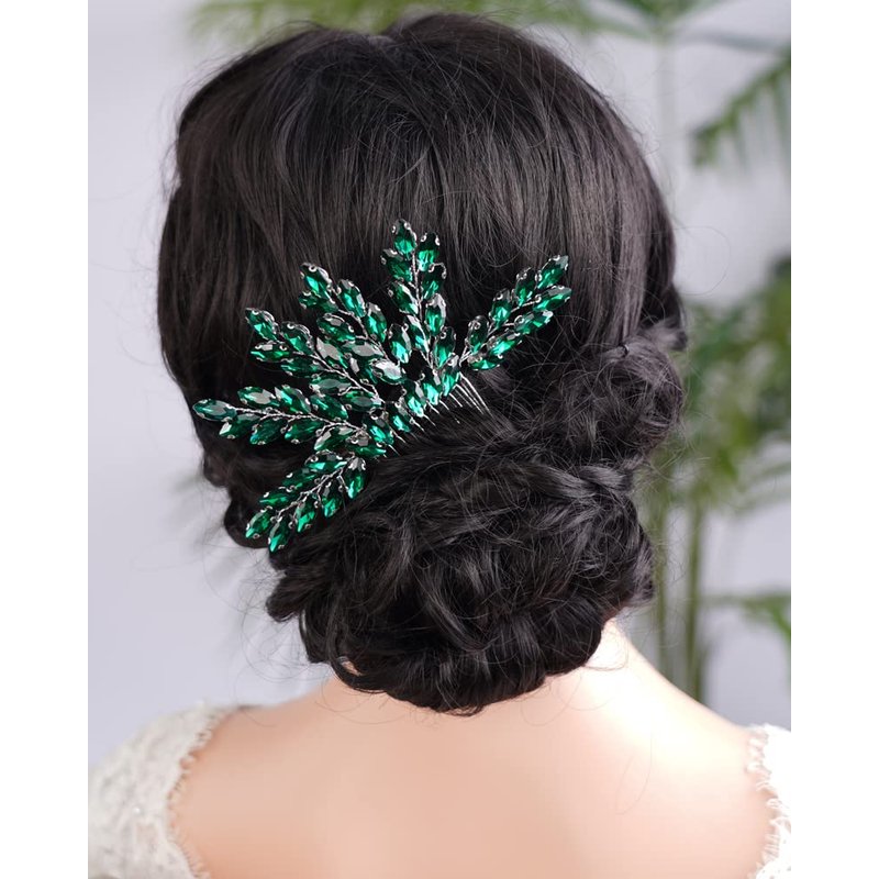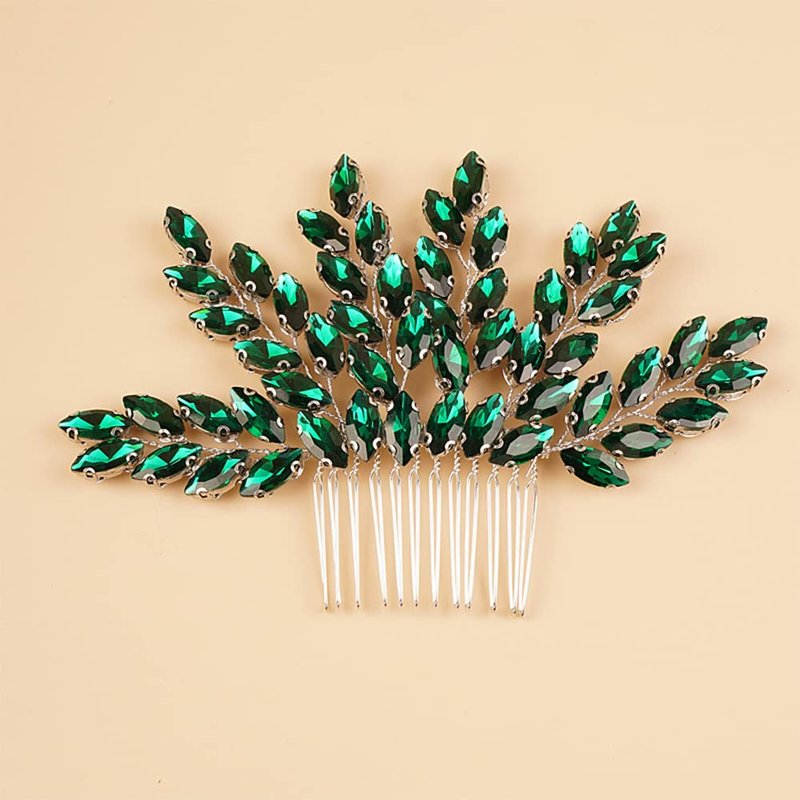 BERYUAN Green Crystal Bride Hair Comb Teardrop Crytsal Rhinestone Hair Piece Wedding Hair Accessories with Crytsal Rhinestone Bridal Hair Side Comb for Wedding Women and Girls (green)