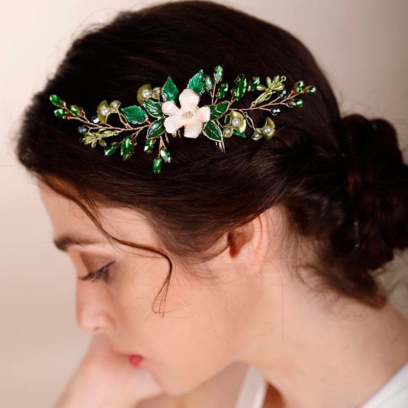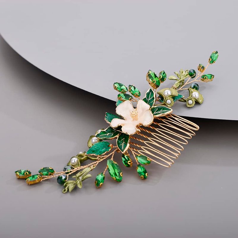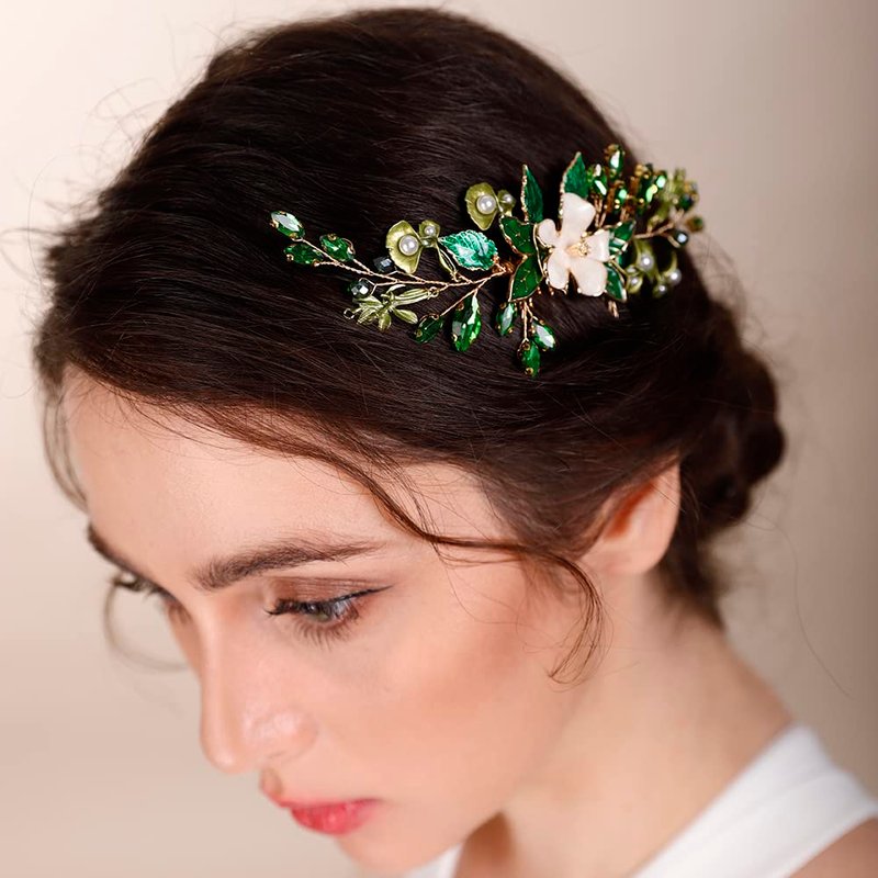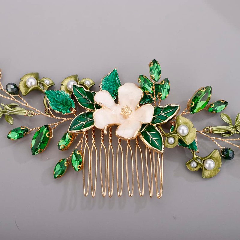 BERYUAN Green leaf Flower Hair Piece Bridal Hair Comb for Bride Bridesmaid Bride Hair Accessories Wedding Headband