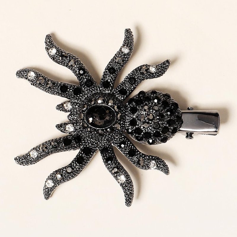 BERYUAN Halloween Spider Hair Clips Creative Rhinestone Insect Headclip Sparkle Rhinestone Monster Hairpins Black Rhinestone Spider Hair Pins Vintage Halloween Hair Clip for Party