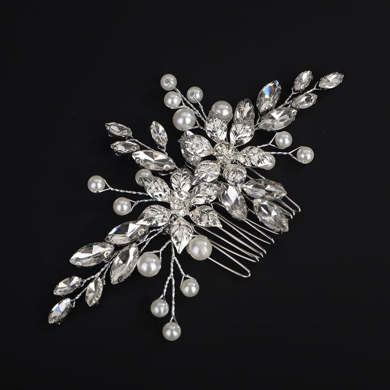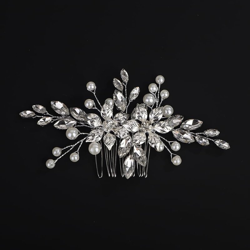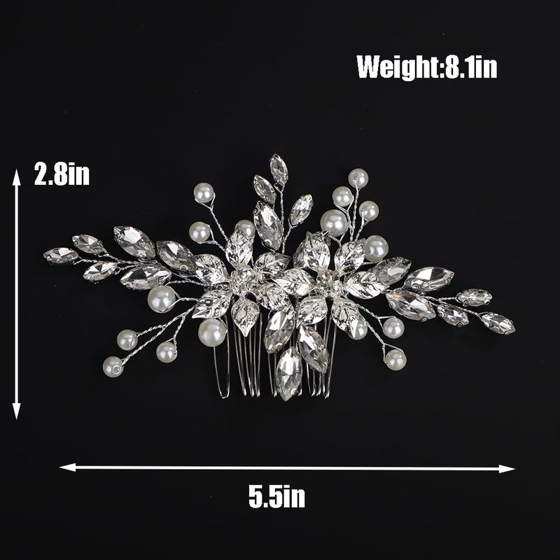 - Premium Materials:Crafted with rhinestones,pearls,and crystals,this hair comb is designed to last and maintain its brilliant shine. Size:the silver rhinestone wedding hair comb is 5.5inch in length,2.8inch in width.