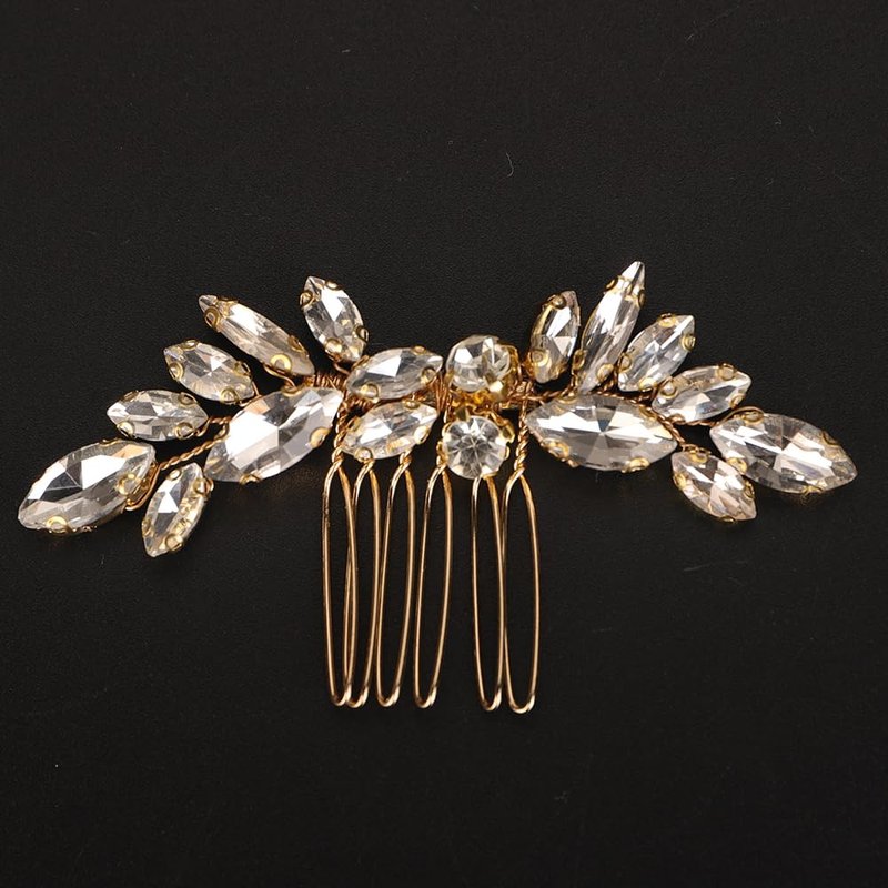 BERYUAN Sparkly Crystal Rhinestone Wedding Hair Comb Teardrop Rhinestone Headpiece Silver Gold Rhinestone Slide Comb Silver Gold Wedding Hairpiece for Women (gold)