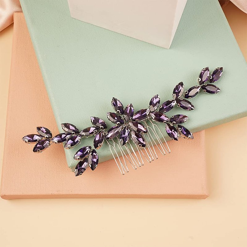 BERYUAN Wedding Crystal Hair Comb Flower Crytstal Hair Piece Teardrop Crystal Rhinestone Wedding Hair Accessories Bride Headband for Wedding (purple)