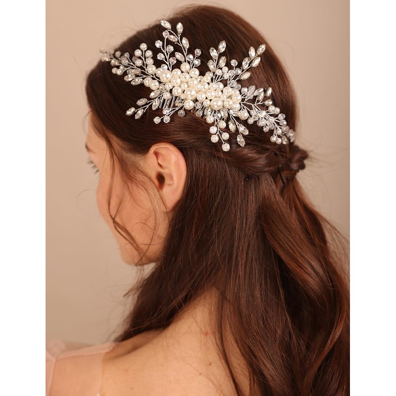 BERYUAN Wedding Crystal Rhinestone Hair Comb Pearls Crystal Rhinstone Headpiece Pearls Wedding Headband Silver Bride Hair Accessory for Brides (silver)