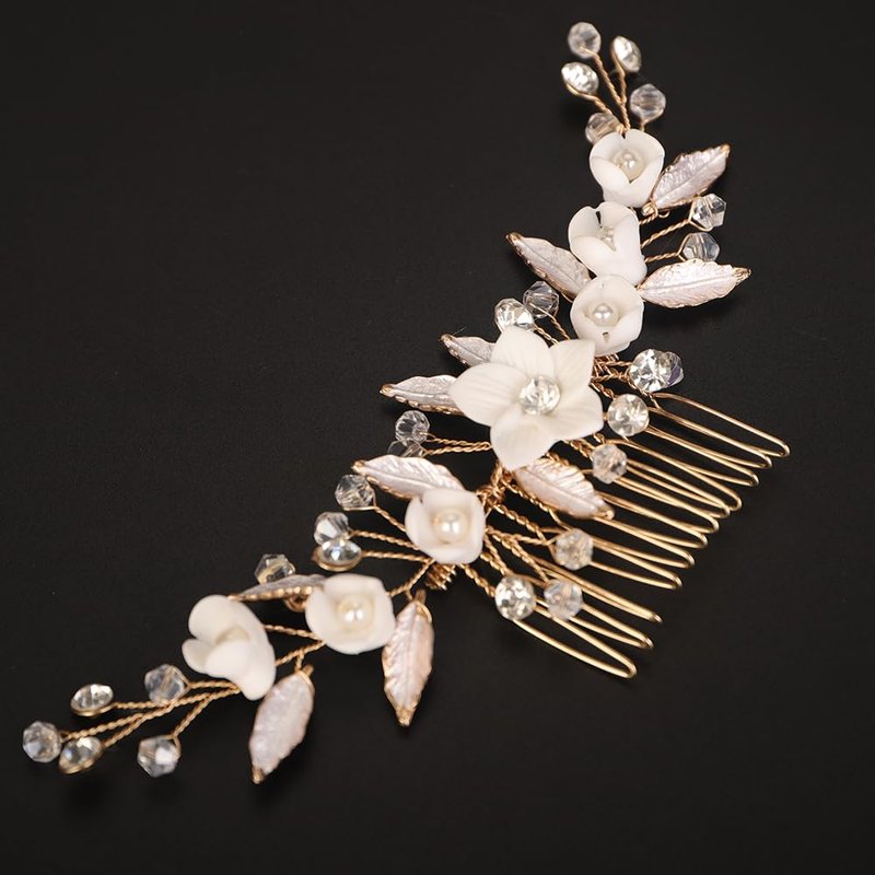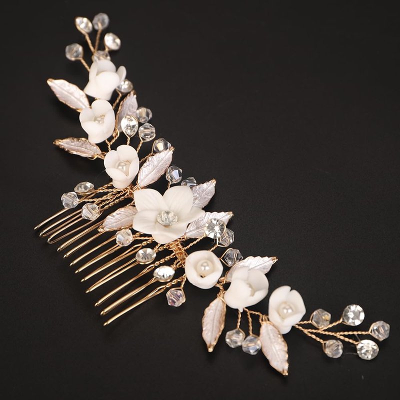 - Design:The hair comb is designed with gold flowers,leaves,and pearls,adding a touch of elegance and beauty to your hairstyle. The exquisite design makes it suitable for weddings,parties,proms,or any other special occasion.