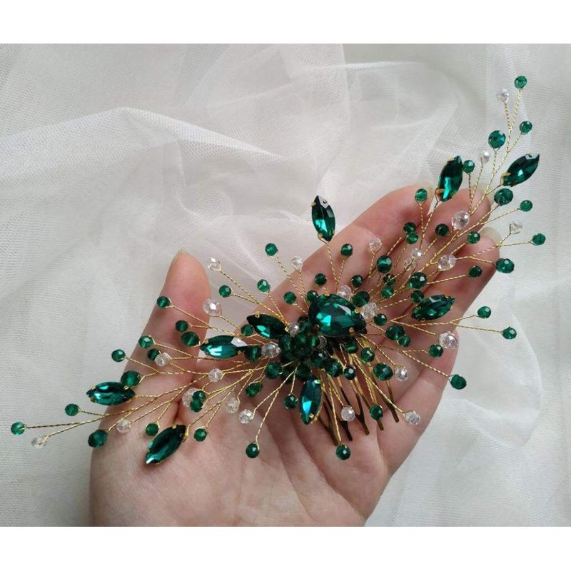 BERYUAN Women Bridal Teardrop Emerald Green Crystal Hair Comb Wedding Hair Accessory Rhinestone Hair Piece Party Headress for Bride Bridesmaid