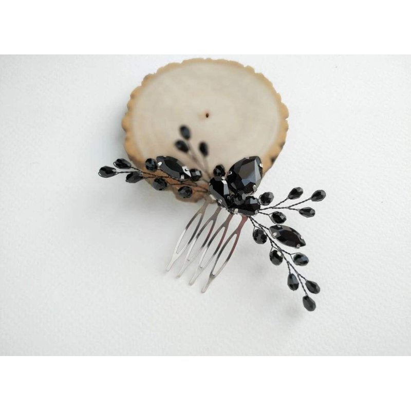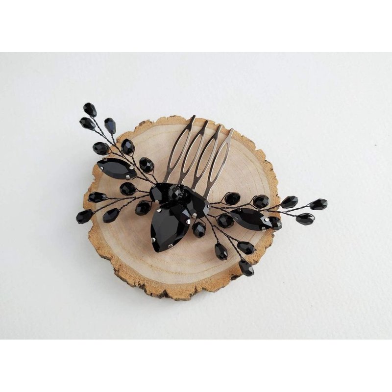 BERYUAN Women Rhinestone Onyx Black Teardrop Small Hair Comb Bridal Wedding Hair Accessory Crystal Gift for Her Party Headpiece