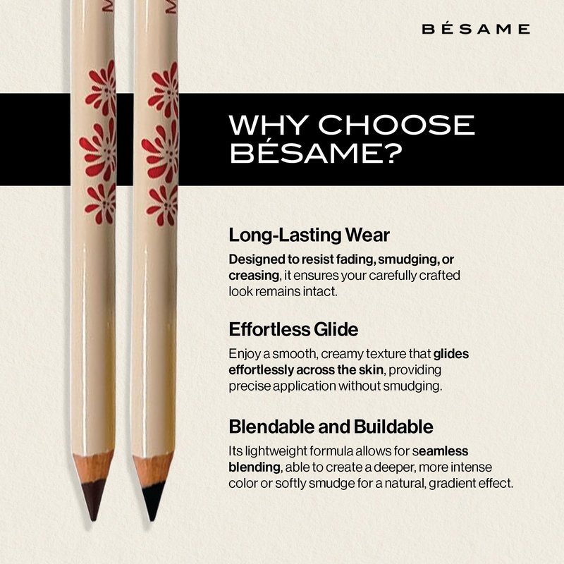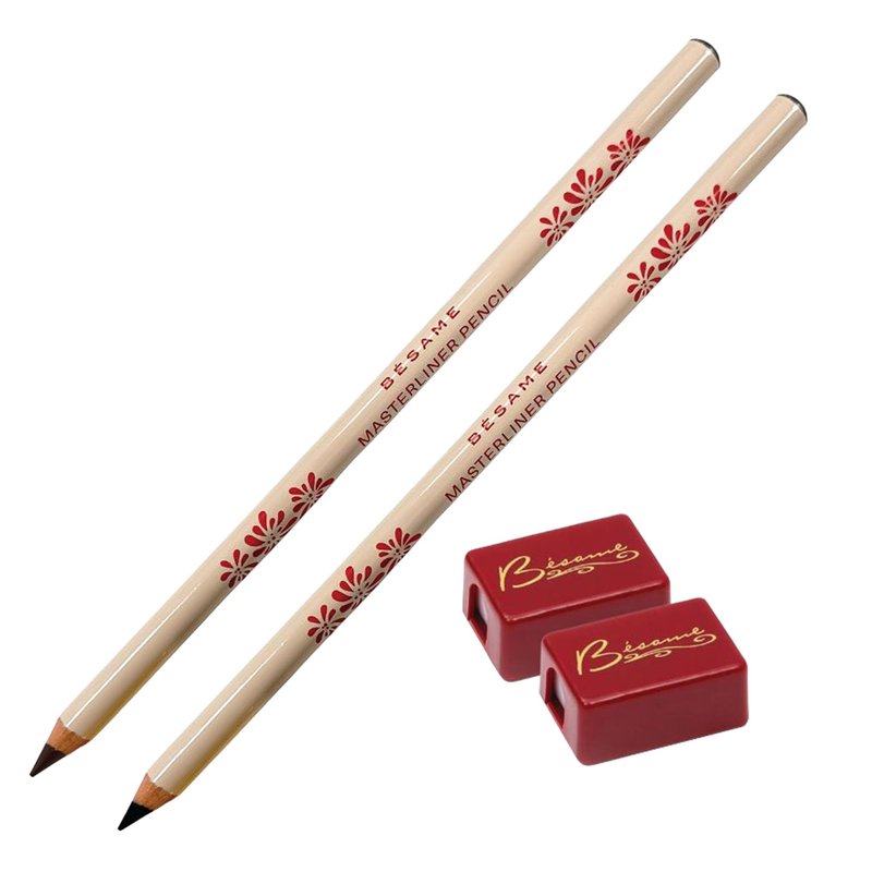BESAME Masterliner Eyeliner Pencil Duo – Black and Brown Wooden Pencils with Sharpener, Long-Lasting, Smudge-Proof, Water-Resistant, Vegan, and Easy-to-Blend Formula