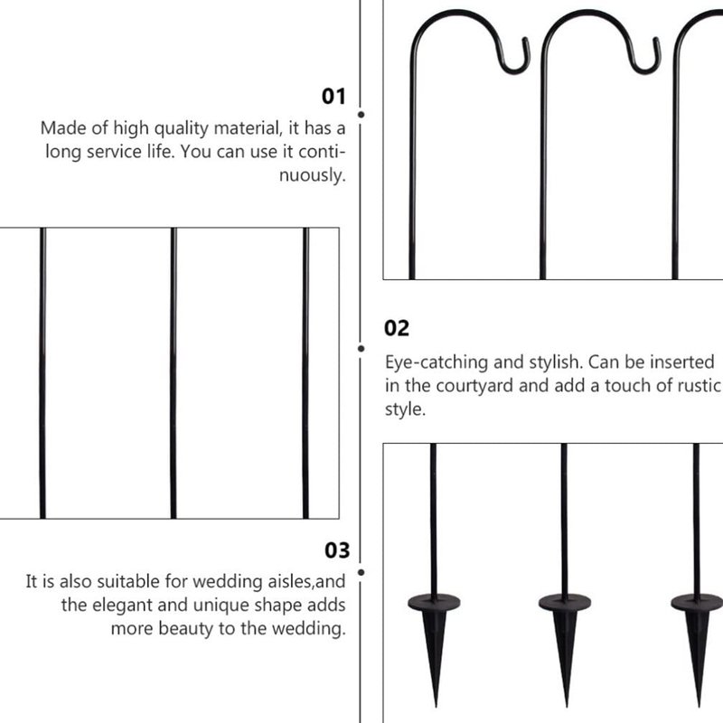- - The tapered base design of the garden hook can provide stronger support for the hook, insert the tall shepherd hook directly into the ground, and not easy to fall over.