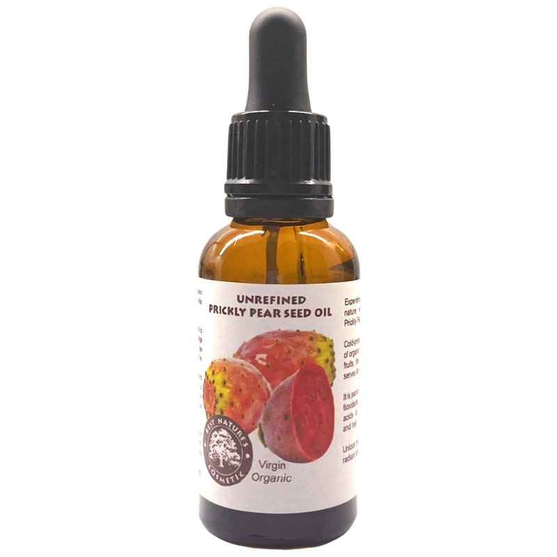 - 100% Pure Organic, Cold Pressed, Unrefined, Undiluted. BOTANICAL NAME: Opuntia Ficus-Indica; COUNTRY OF ORIGIN: Morocco; EXTRACTION METHOD: Cold Pressed, Unrefined; PLANT PART: Seeds; SCENT: Sweet, nutty scent; Color: Yellow to golden yellow liquid.; PACKAGED in a dark amber glass bottle with glass dropper.