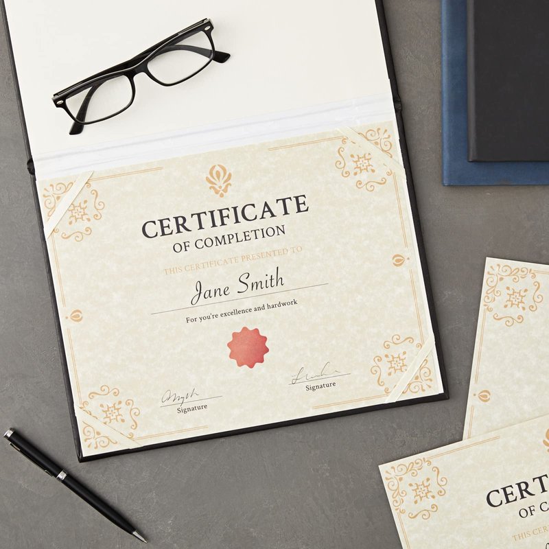 - Printer-Friendly: Each printable certificate paper sheet measures 8.5 x 11 inches, has a thickness of 90gsm, and is compatible with both inkjet and laser printers