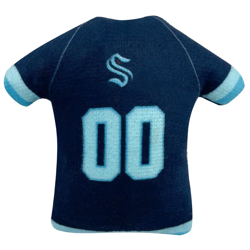 BEST PLUSH CAT TOY NHL SEATTLE KRAKEN Complete Set of 3 piece Cat Toys filled with Fresh Catnip. Includes: 1 Jersey Cat Toy, 1 Hockey Puck Cat Toy with Feathers & 1 #1 Fan Cat Toy. Beautiful Team LOGO