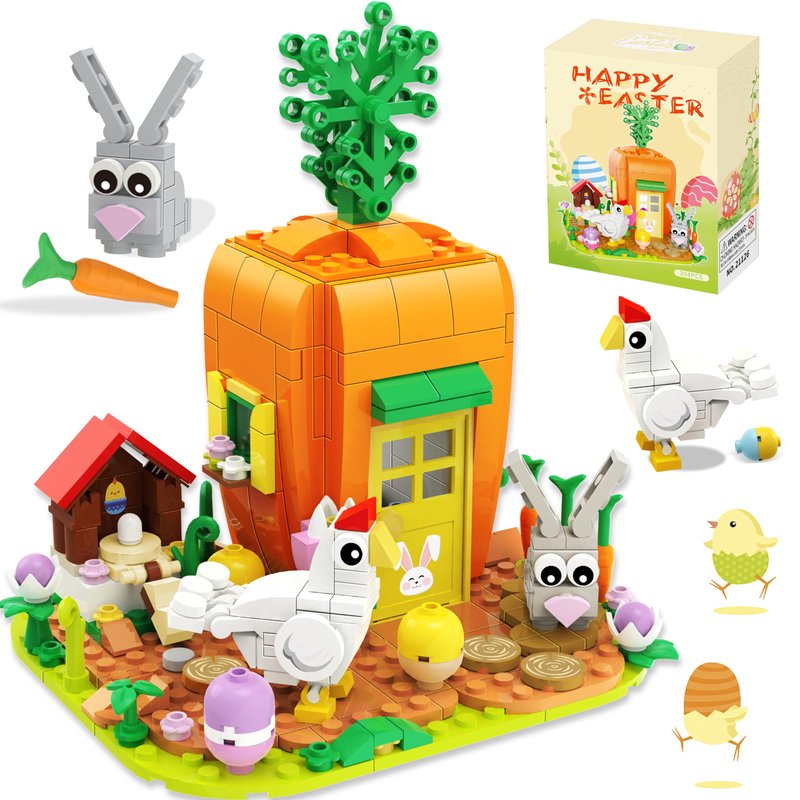 - 🥕【Happy Easter】Try letting kids make their own Easter gifts - Easter bunny's carrot house. Help the bunny and chick build their homes and as Easter basket toys collection for the home decor. By building Easter elements to celebrate the festival, give your child a new novelty easter toy and feel a different holiday atmosphere.