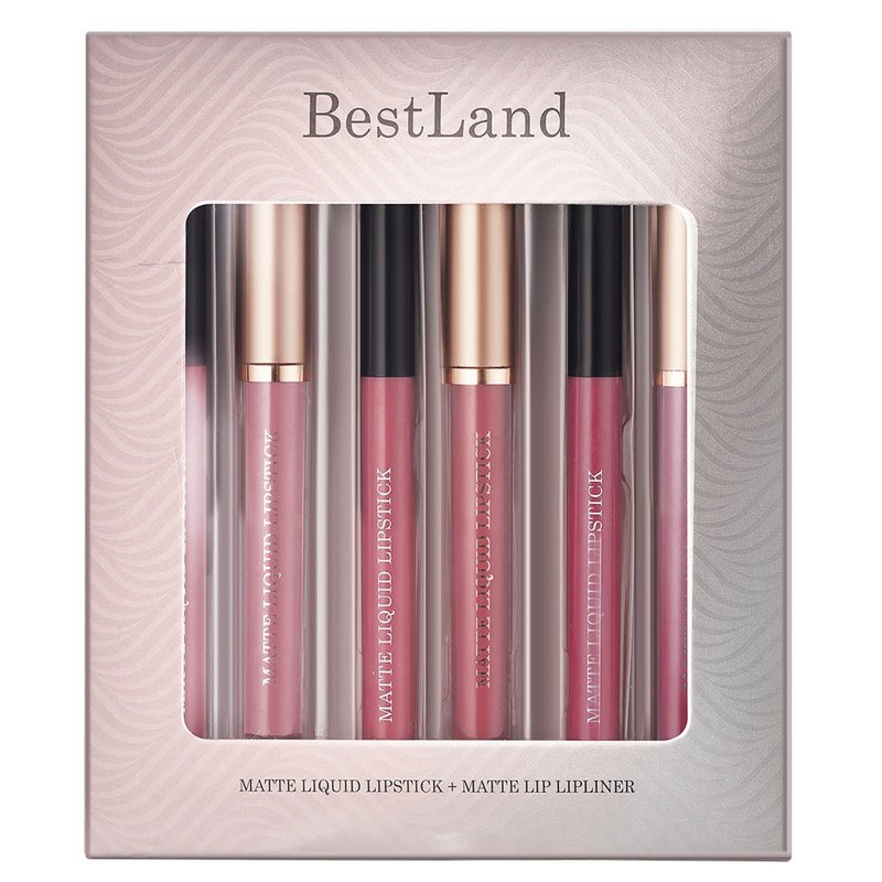 6Pcs Bestland Matte Liquid Lipstick and Lip Liner Set, Non-Stick Cup Not Fade Waterproof Nude lipstick Makeup Kits Velvety Nude Lipliner Lip Gloss Make Up Gift Set