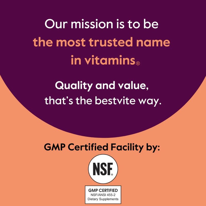 - NSF GMP CERTIFIED FACILITY: Bestvite’s facility is NSF/ANSI 455-2 Dietary Supplements Good Manufacturing Practice (GMP) certified. Earning GMP certification from NSF verifies that a manufacturing facility has the proper methods, equipment, facilities, and controls in place to produce dietary supplement products.