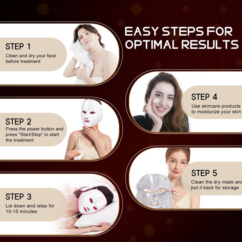 - Use red light therapy mask to address different skin concerns through LED transmission into the skin.