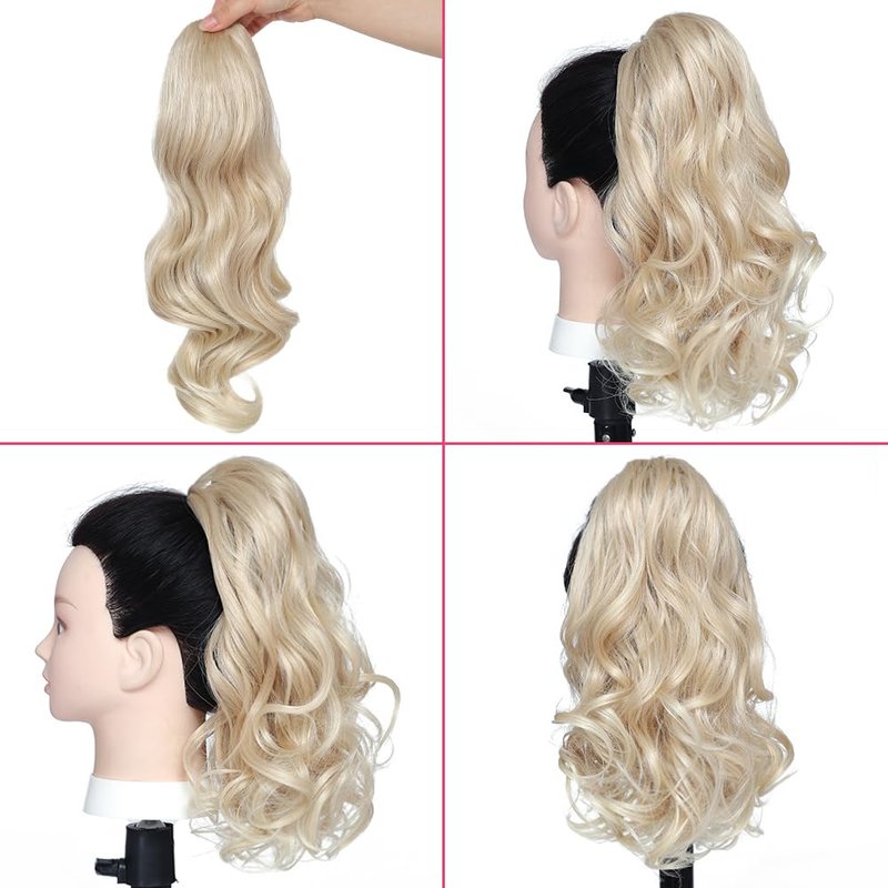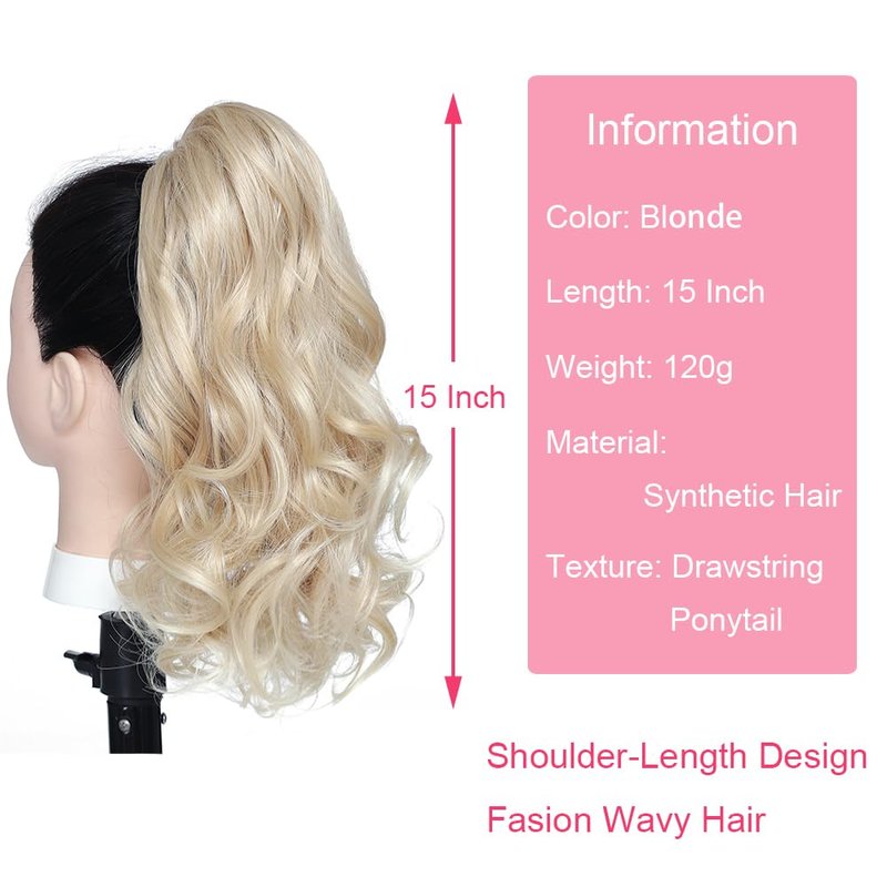 BETHANY Ponytail Extension,15 Inch Drawstring Ponytail Hair Extensions Short Wavy Fake Pony Tail Synthetic Hair Pieces for Women (Blonde)