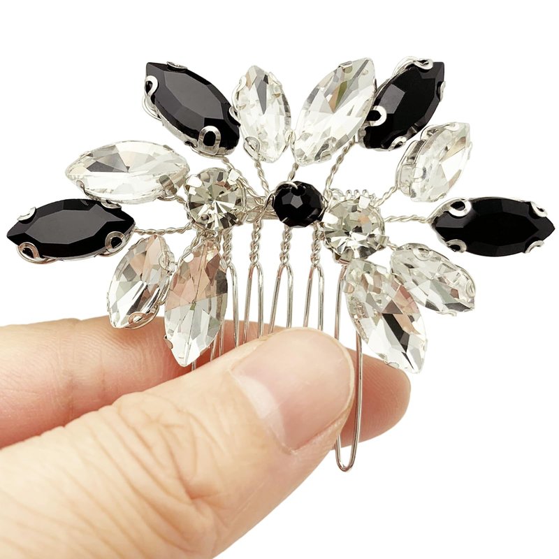 BETITETO Small Crystal Hair Accessories 2 Pieces Black White Rhinestone Silver Hair Comb Pins Pieces for Wedding Party