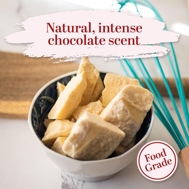 - CERTIFIED COCOA BUTTER FOOD GRADE ORGANIC - Our Vegan Organic Cocoa Butter is packaged in eco-friendly re-sealable pouches. Note: though commonly for external use this product is also 100% food grade. Our Solid Organic Cocoa Butter has a rich chocolate scent that fades after a few minutes of applying on skin.