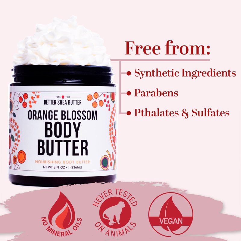 Better Shea Butter Whipped Body Butter for Women - ORANGE BLOSSOM Body Lotion with Raw Shea Butter for Dry & Delicate Skin - Paraben Free, Non-Greasy, No Synthetic Fragrances Whipped Body Cream 8 oz