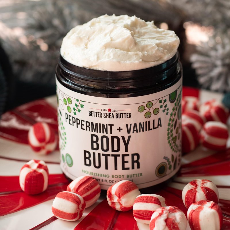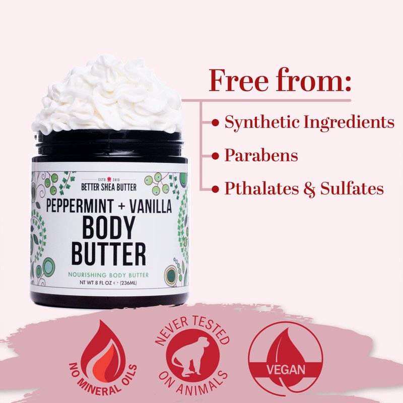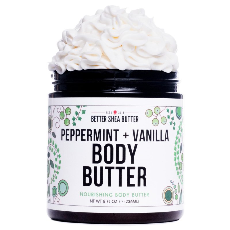 Better Shea Butter Whipped Body Butter for Women - PEPPERMINT VANILLA Body Lotion - Whipped Body Cream for Dry Skin - Paraben-Free, Non-Greasy Body Cream - Vanilla Peppermint Body Butter 8 oz