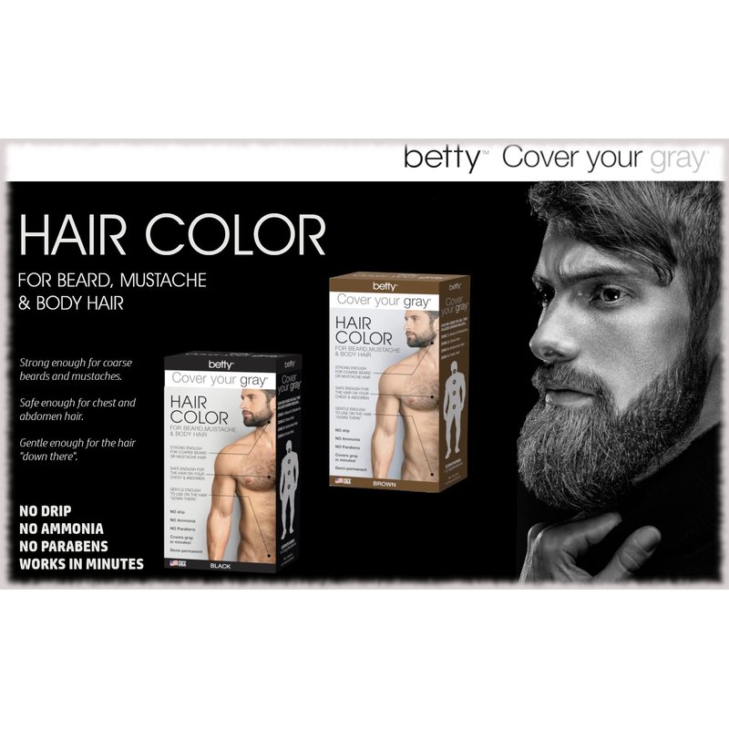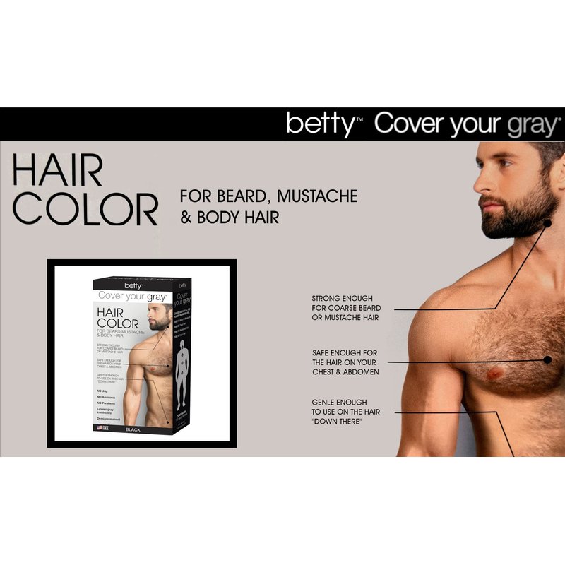 - MENS BODY HAIR COLOR: Go Brown... uptown or downtown. Gray? No way! Betty Cover Your Gray Mens Hair Color for Beard, Mustache & Body Hair rules above and below the belt! It naturally colors, covers gray and enhances to match your hair above.