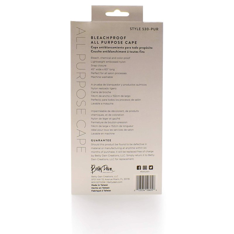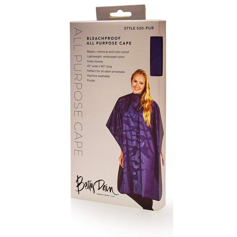 Betty Dain Bleach-proof All Purpose Styling Cape, Material Defends Against Bleach Stains, Color Proof, Chemical Proof, Waterproof, Lightweight Embossed Nylon, Purple
