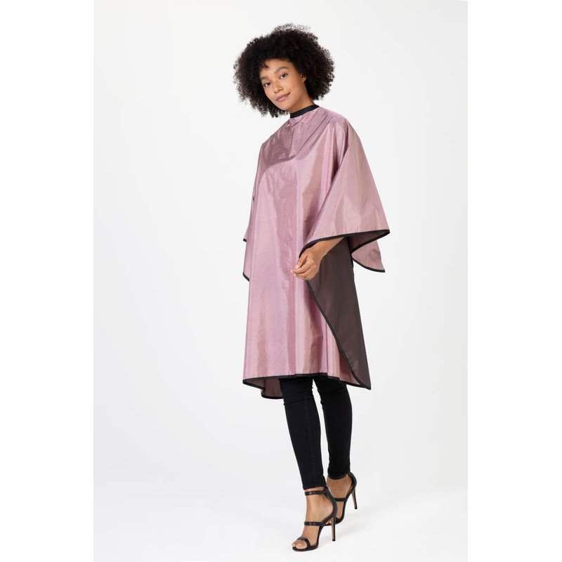 Betty Dain Reversi Reversible Coloring/Styling Cape, Two-Sided Cape, Black Side Has Chemical Proof Finish for Processing, Snap Closure at Neck, 50 x 60 Inches, Rose