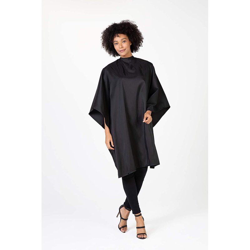 Betty Dain Shimmer Cutting/Styling Cape, Lightweight Iridescent Nylon, Snaps Adjust Up To 22 inch Neck Closure, Water Resistant, 54 Inches Wide x 62 Inches long x 22 Inches back, Black